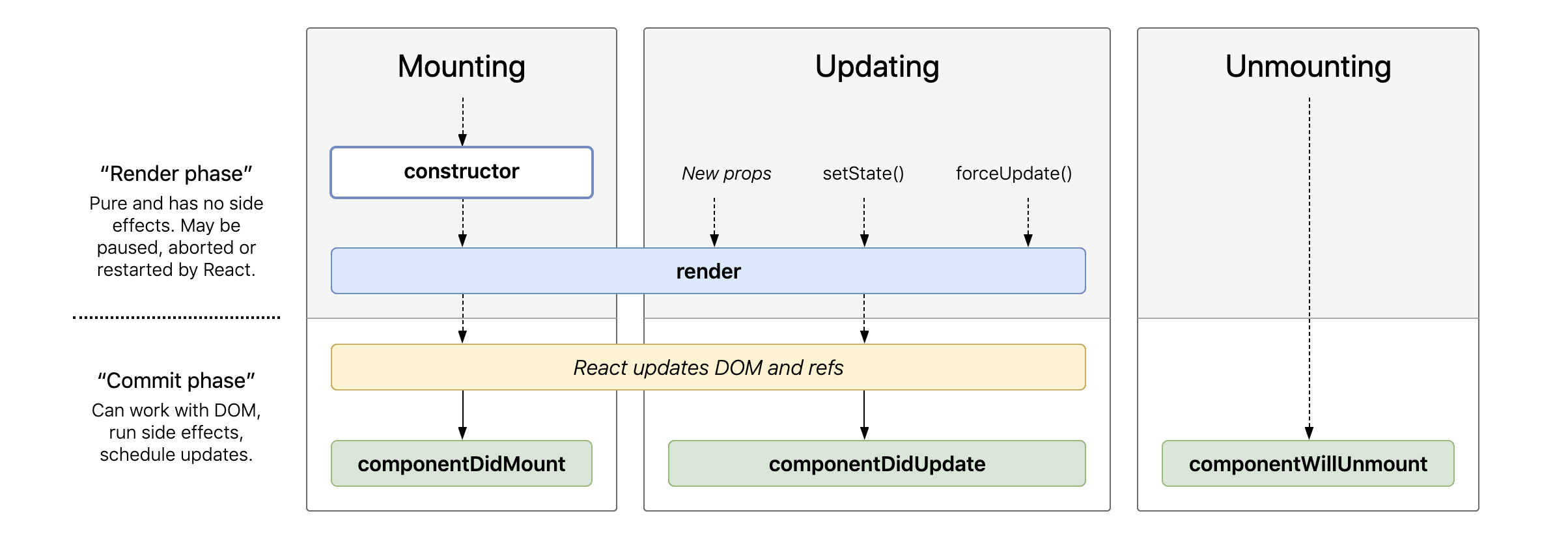 props나 state가 변할 때 update가 일어난다. component가 다시 렌더링 될 때 아래의 메서드들이 순서에 따라 실행된다.