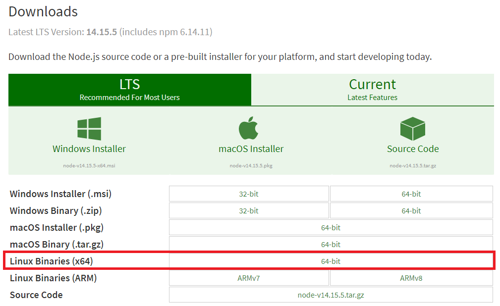 tar -xJf node-v14.15.5-linux-64.tar.xz