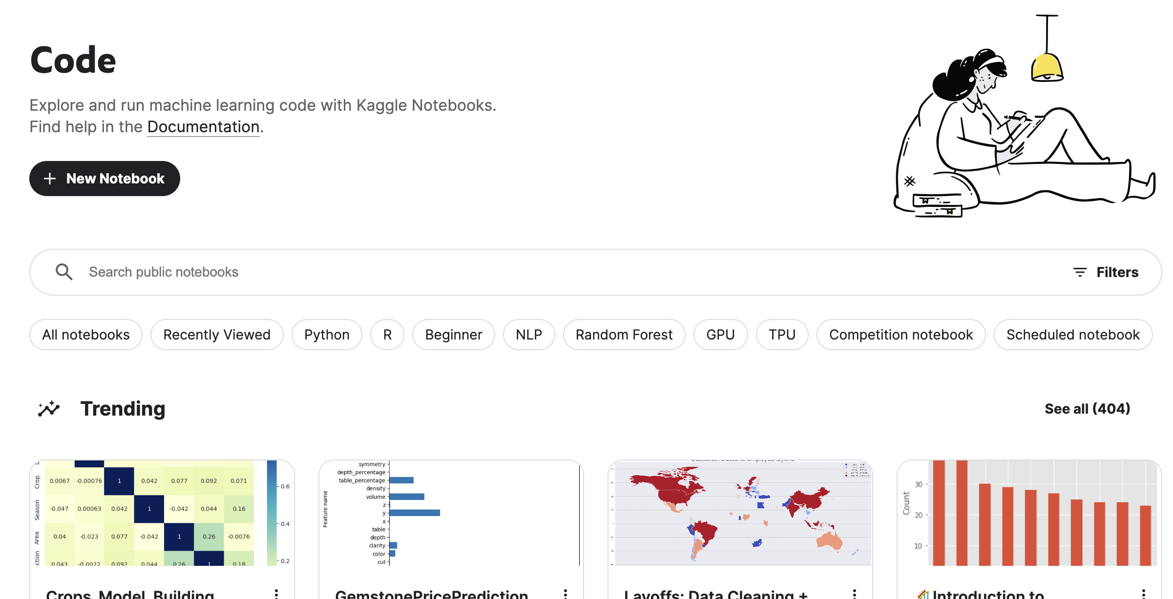 캐글에서 데이터분석 실습을 해보려면 노트북(Notebook)을 사용해야 하는데 구글링 해보니 죄다 옛날 글들이라..